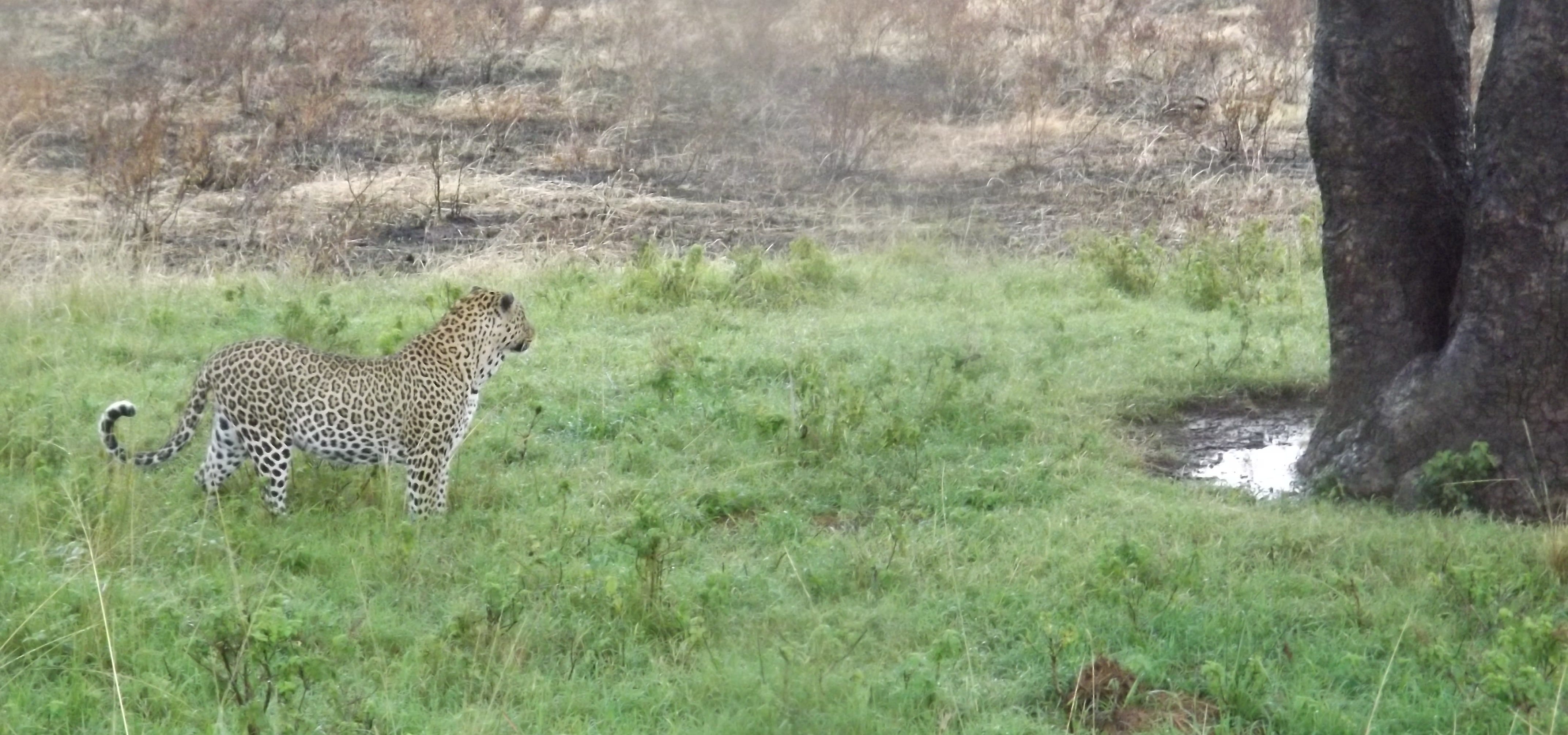 I thought this might be salesmanship. Then we cut across the savanna toward a particular acacia tree where a leopard kept its kills, and I looked in the rearview mirror.